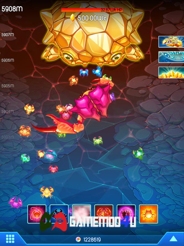 Ngoài ra, các boosters không giới hạn sẽ giúp người chơi cải thiện hiệu suất đội quân cua chiến của mình. Dù bất cứ cuộc chiến nào khó khăn cỡ nào, bạn vẫn sẽ có đầy đủ năng lượng và sức mạnh để đương đầu với những thử thách của đại dương sâu thẳm.